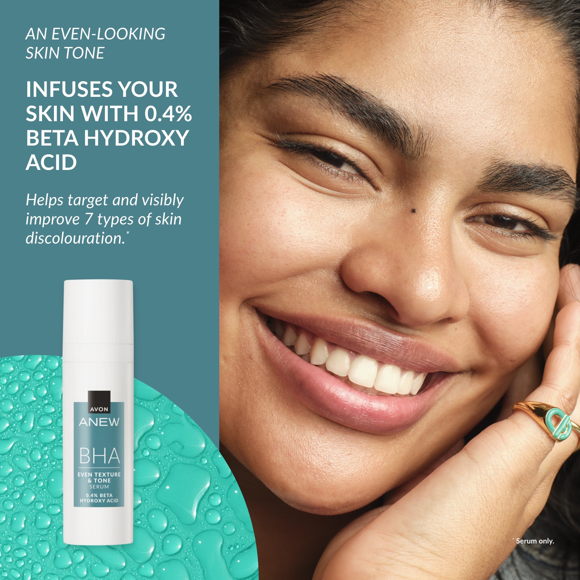 Hey beautiful… we’ve got just what you need to show discolourations and uneven, textured skin the door. Meet Anew Even Texture & Tone Serum.