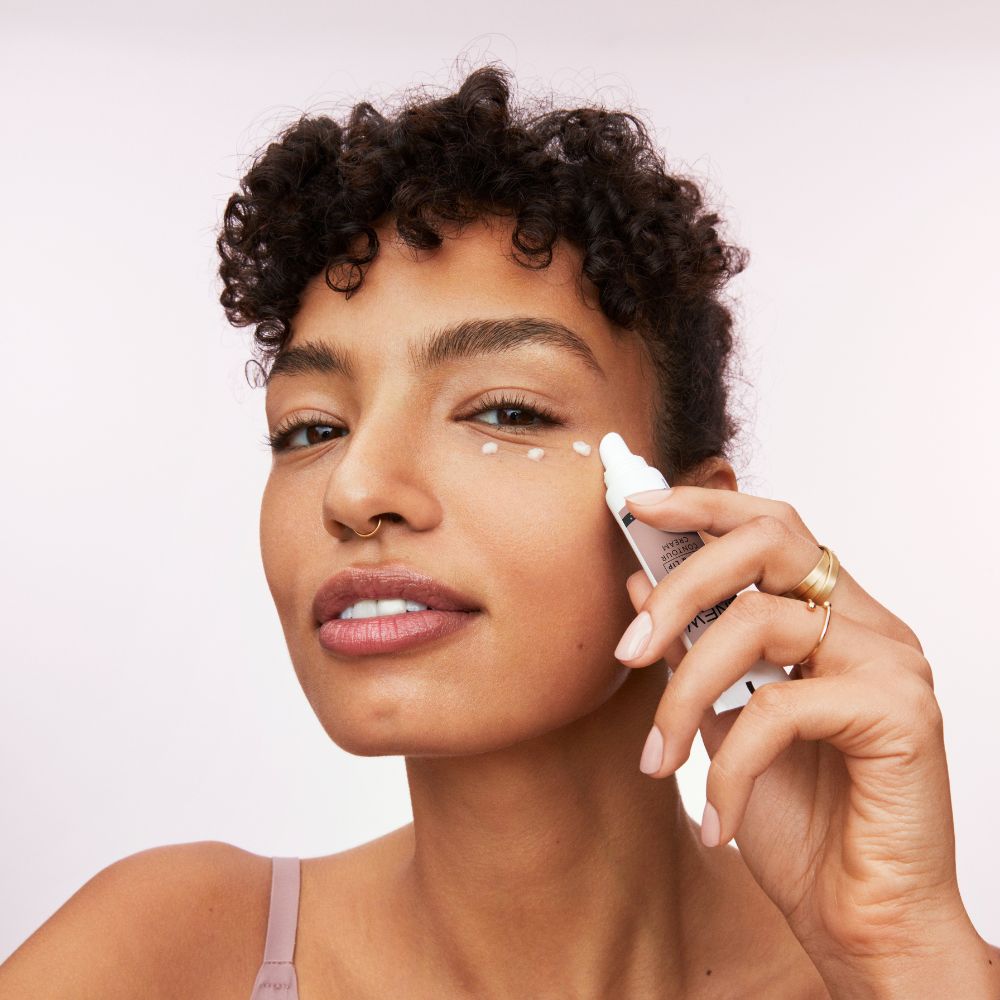 Follow with your age-defying eye and lip contour cream: Every morning and evening, dab a small amount under your eye area as well as your upper lid and brow bone; and then gently tap around your lip area until fully absorbed.