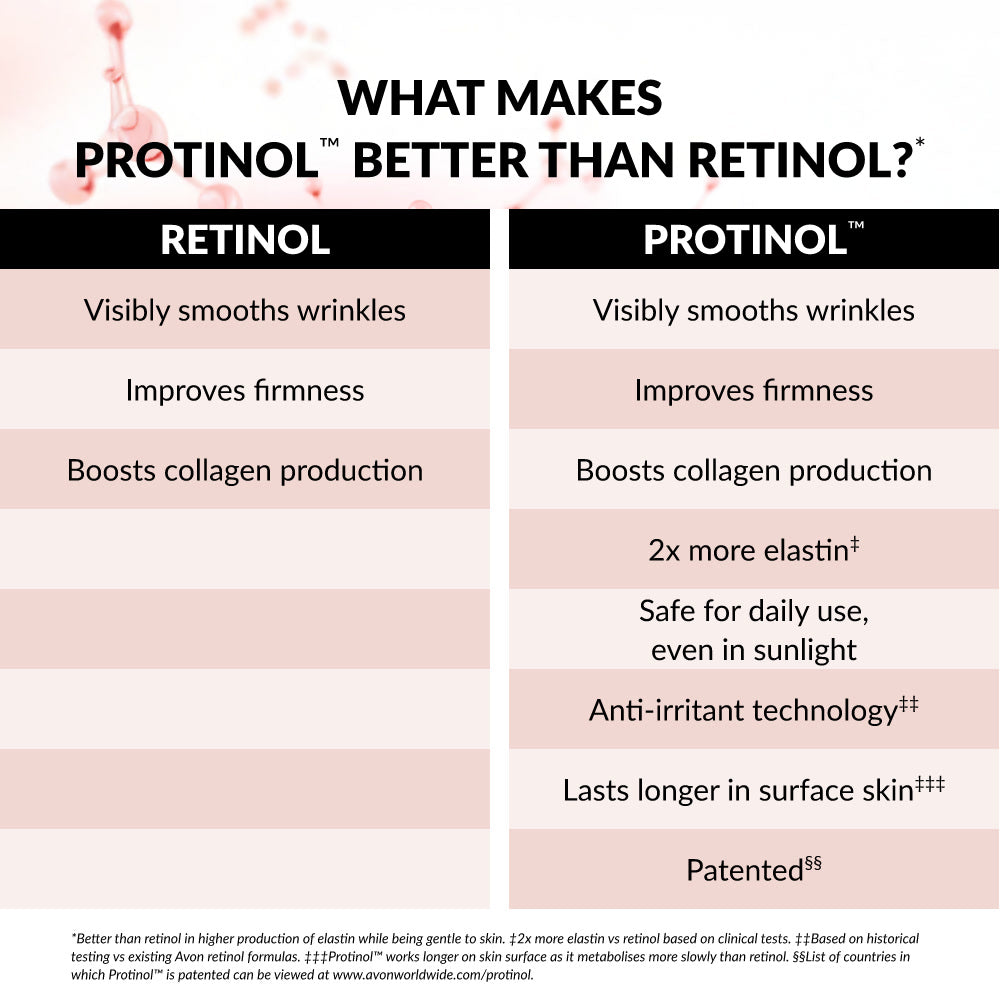 §§Protinol™ works longer on the surface skin as it metabolises slower than retinol.
