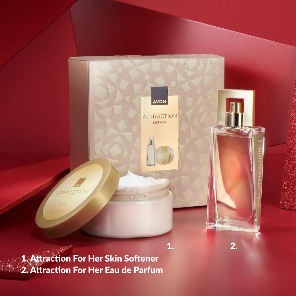Looking for a gift that’ll entice, attract and ramp up the romance this festive season? Meet our iconic Attraction Gift Set For Her. This scent-sual set comes with a woody, fruity and musky women’s perfume filled with irresistible notes of blackberry, orchid and vanilla amber, and a perfumed skin softener to leave skin silky-smooth and smelling sensational. It’s the perfect present to make intimate moments even more magical.