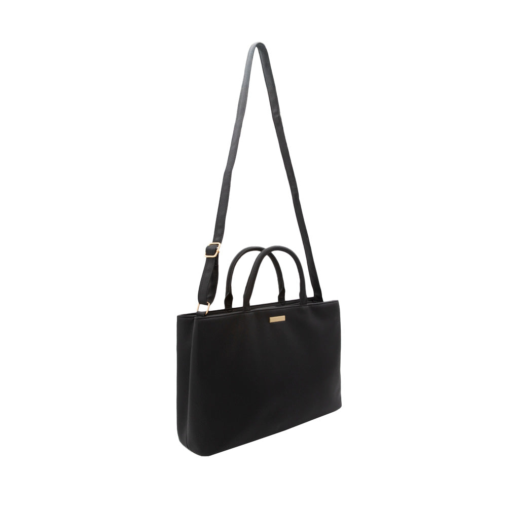 This chic structured bag in classic black has nailed the clever detailing from removable padded laptop sleeve and inner pocket to grab handles and adjustable crossbody strap.
